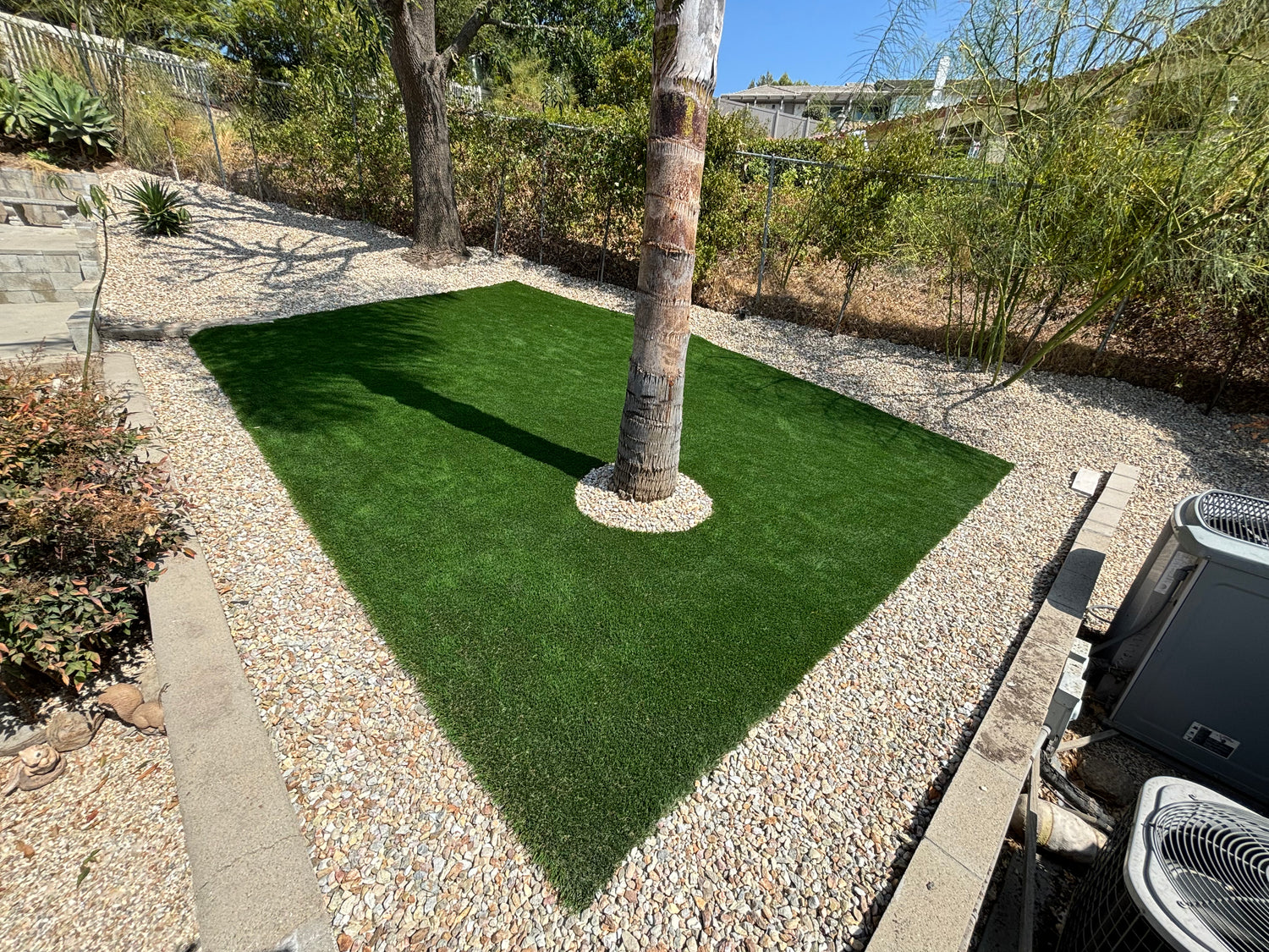 Have your backyard you've always dreamed of having. Combination of gravel path and artificial turf.